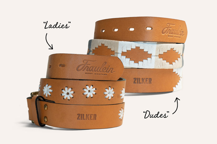 Inspired by American history and western couture, we designed these belts with Fraulein boots to pay homage to honky tonk nostalgia and two-stepping across the dancefloor.