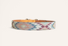 World-class light brown Argentine leather with our signature 'Drewski' fabric, artfully hand-stitched in Buenos Aires. See sizing chart for guidance.